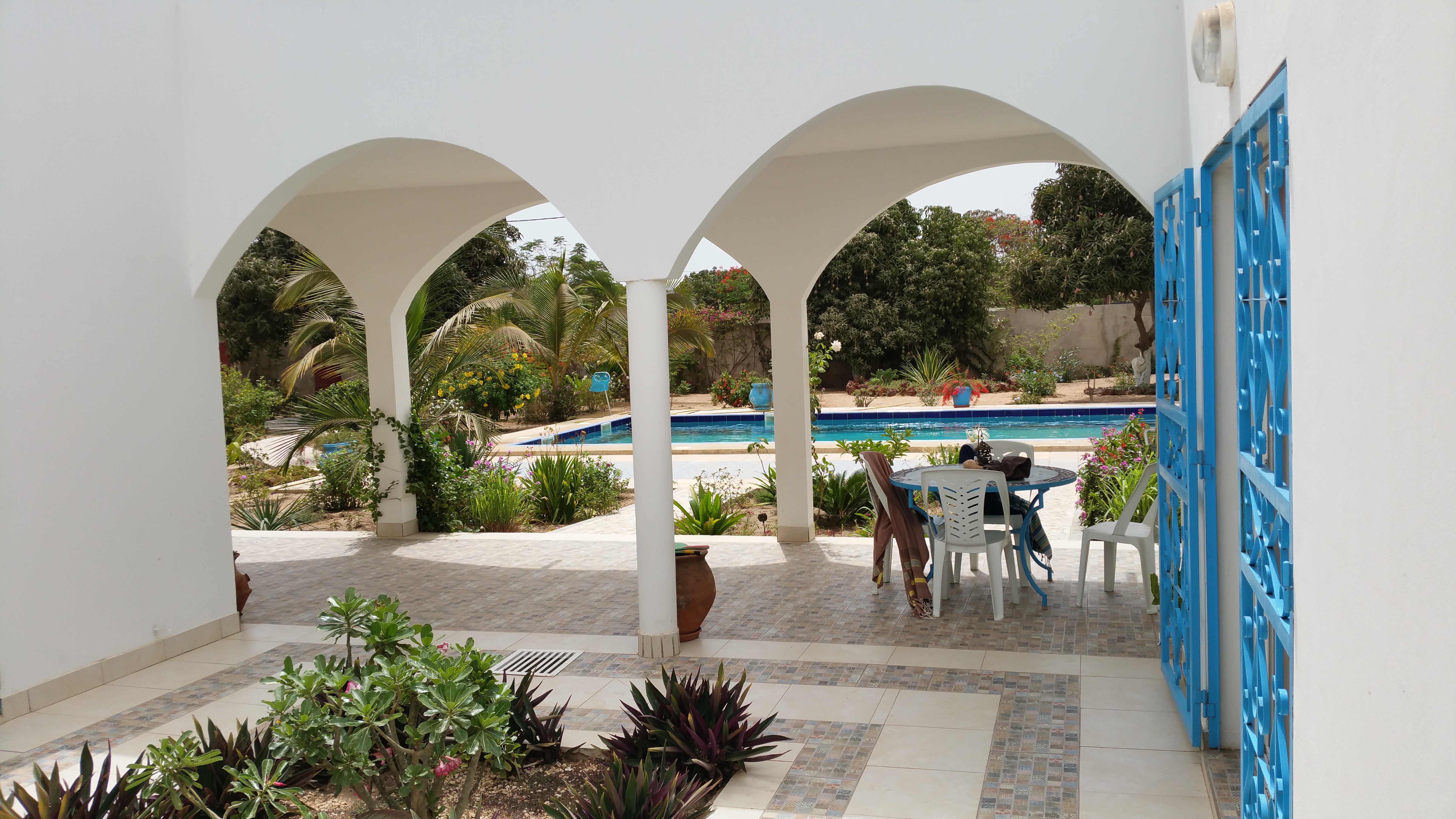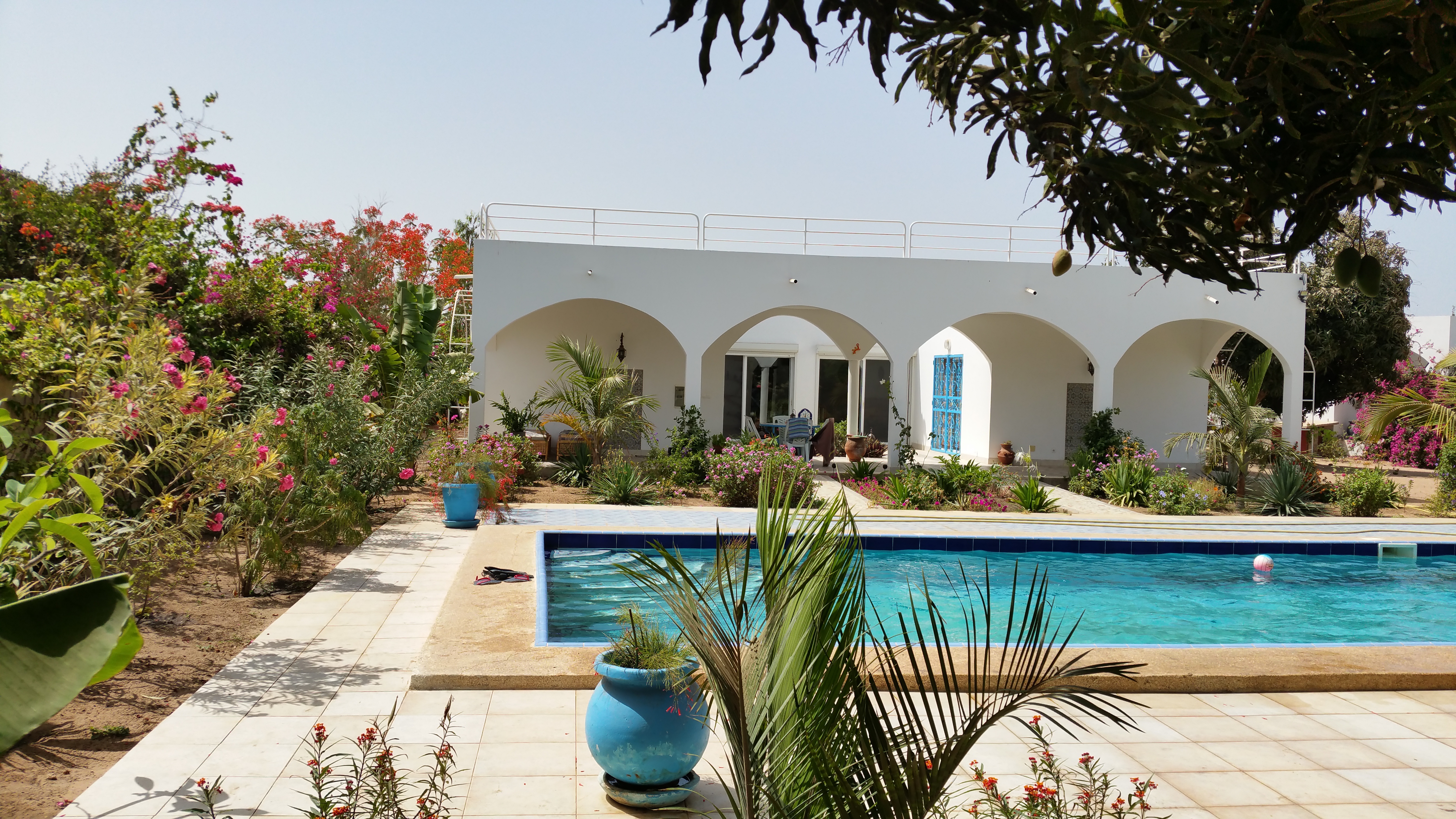 UNE TRÈS BELLE VILLA NICHÉE AU CŒUR DES MANGUIERS DANS UN JARDIN TROPICAL, ANIMÉE PAR LE GAZOUILLEMENT DES OISEAUX.