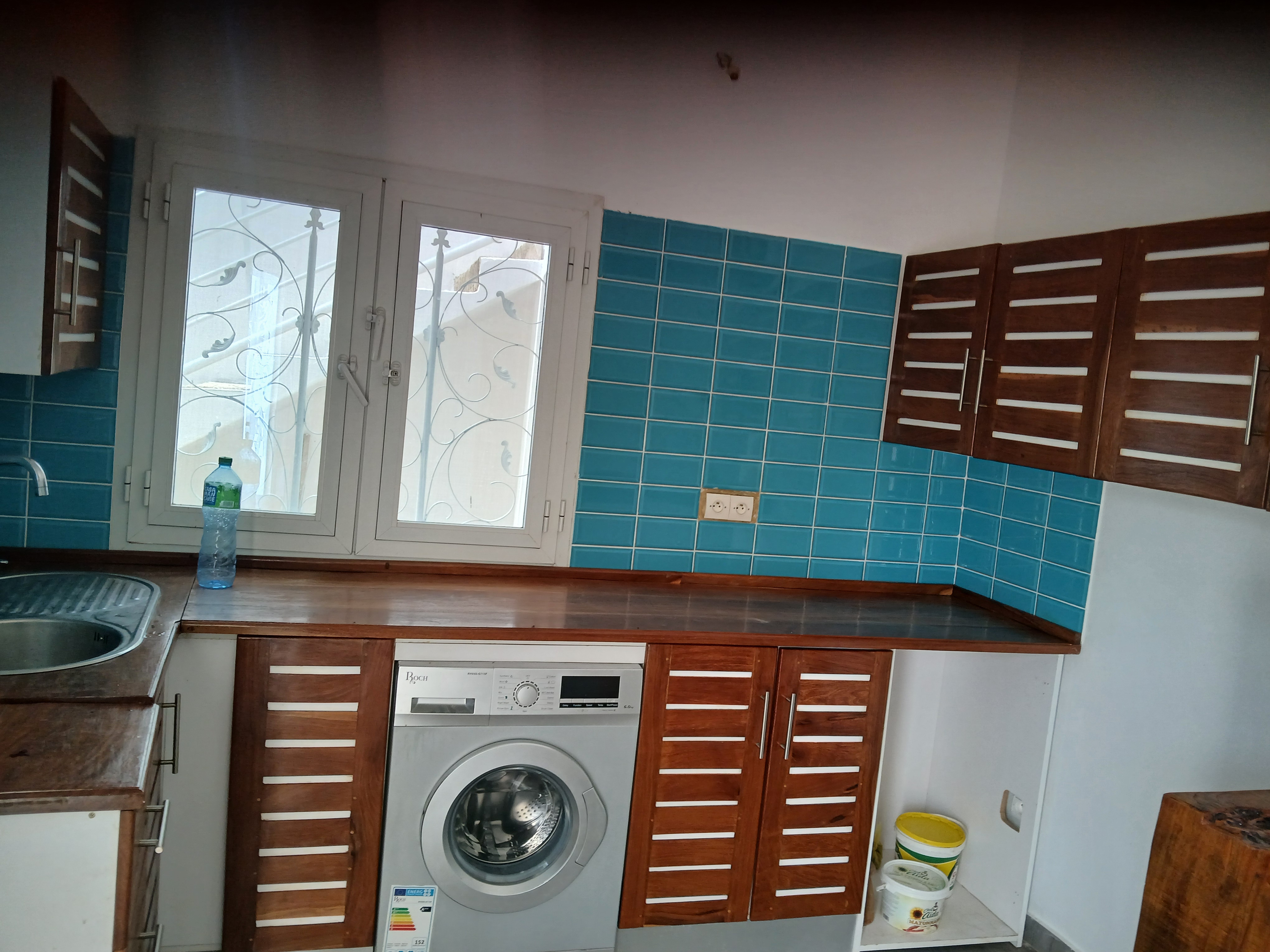 Sur un terrain de 600m², 2 appartements sur les 300m². Le premier appartement se compose de deux chambres + une salle d'eau chacune, un séjour,une cuisine, une salle d'eau-toilette visiteur et une terrasse couverte.